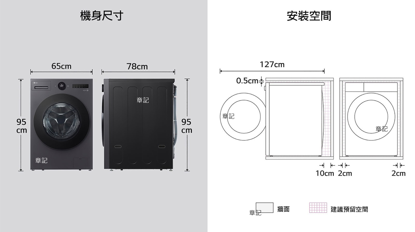 LG AI蒸氣滾筒洗衣機(夜墨灰) WD-S18NDB 尺寸圖