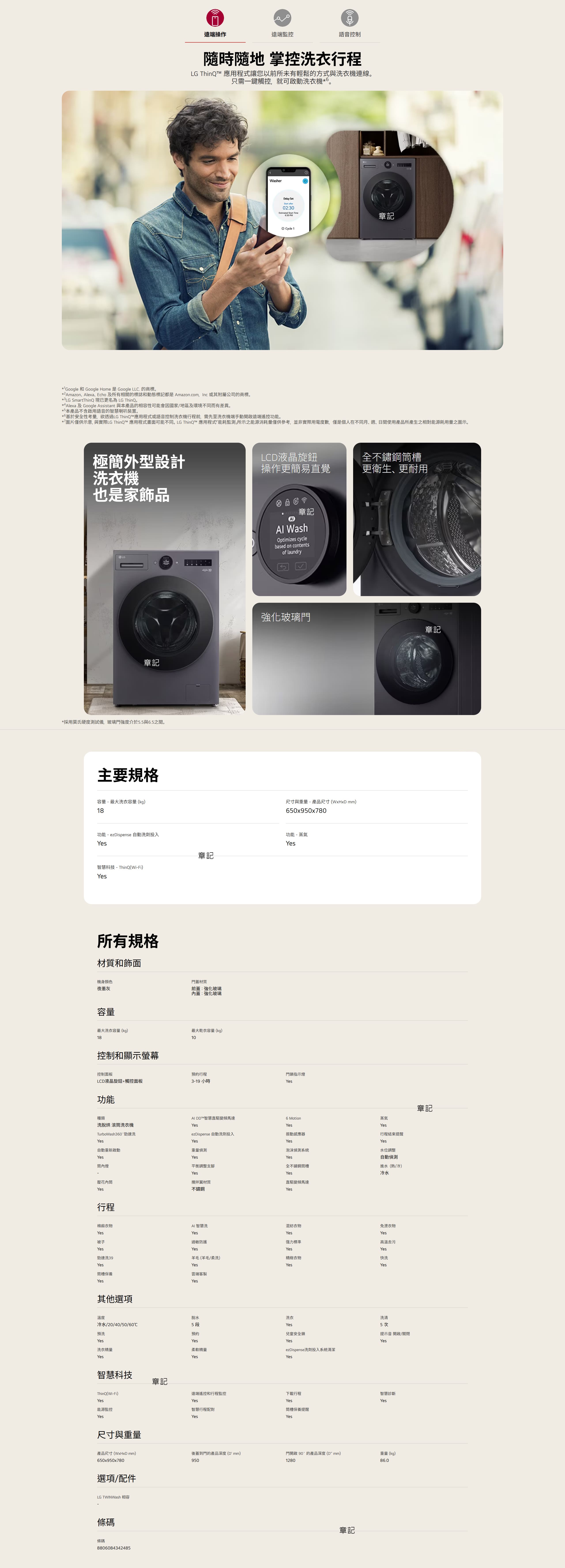 洗衣容量:18公斤