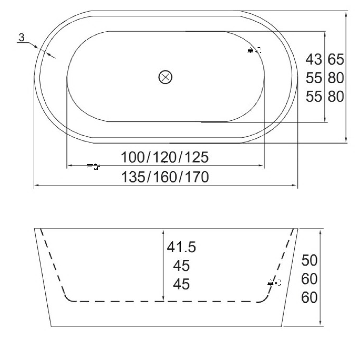CBK 精品浴缸(160cm) CBK-YB99686 尺寸圖