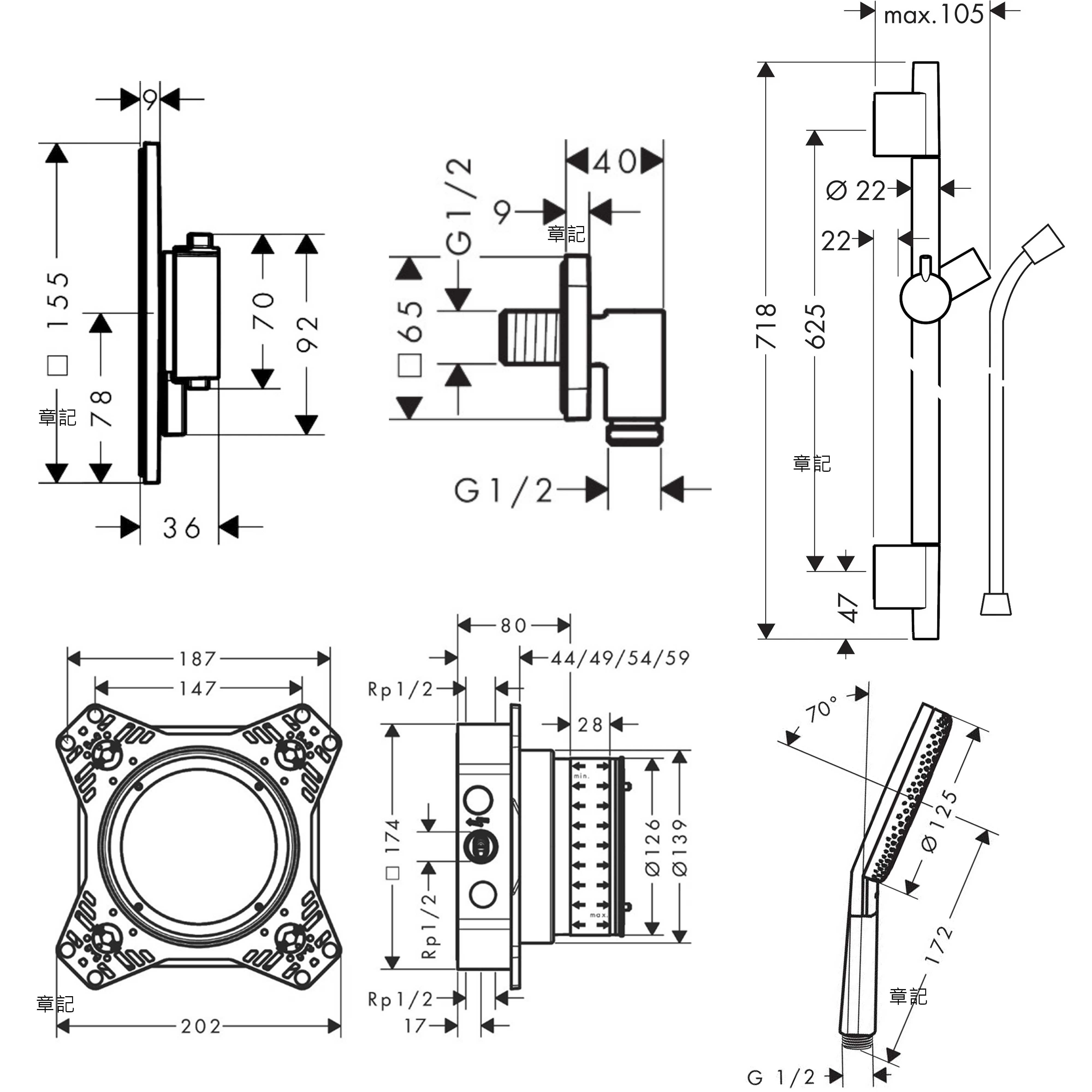 hansgrohe 淋浴組合(含預埋軸心) 71745_26520_28632_26455_26230